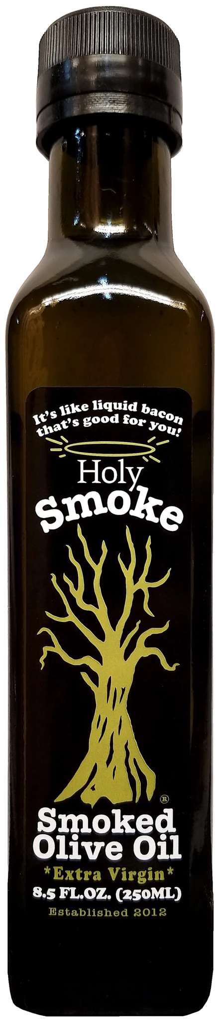 Holy Smoke Smoked Olive Oil is 100% first cold pressed extra virgin olive oil that’s cold-smoked with hickory in Charleston, SC.