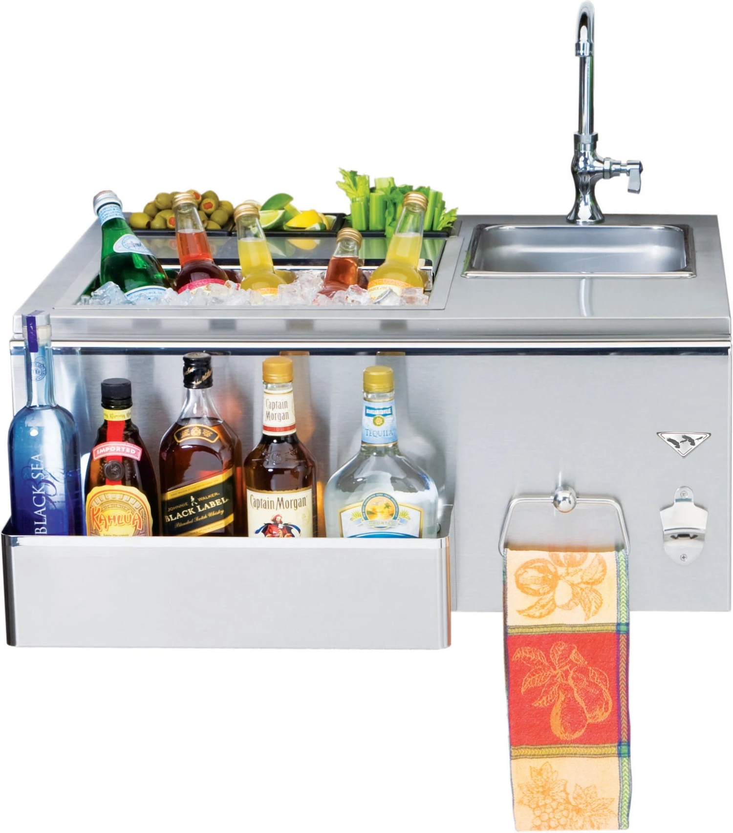 - Stainless steel bottle opener and towel ring